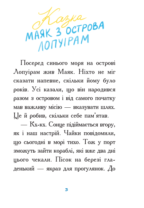 На далекому острові Лопуірам жив собі Маяк. Усі острів’яни були найщасливішими людьми у світі і завжди прокидалися від голосу старого й мудрого балакучого Маяка, який знав про все на світі, тому кожен його любив і поважав.
